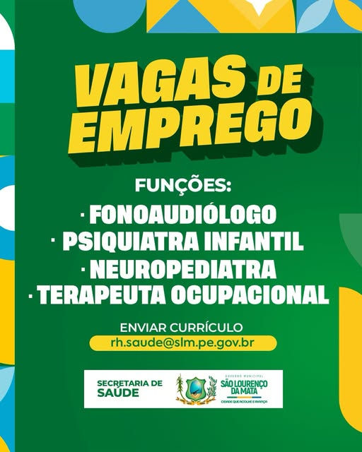 A Prefeitura de São Lourenço da Mata, por meio da Secretaria de Saúde, está com vagas de emprego para as seguintes funções: